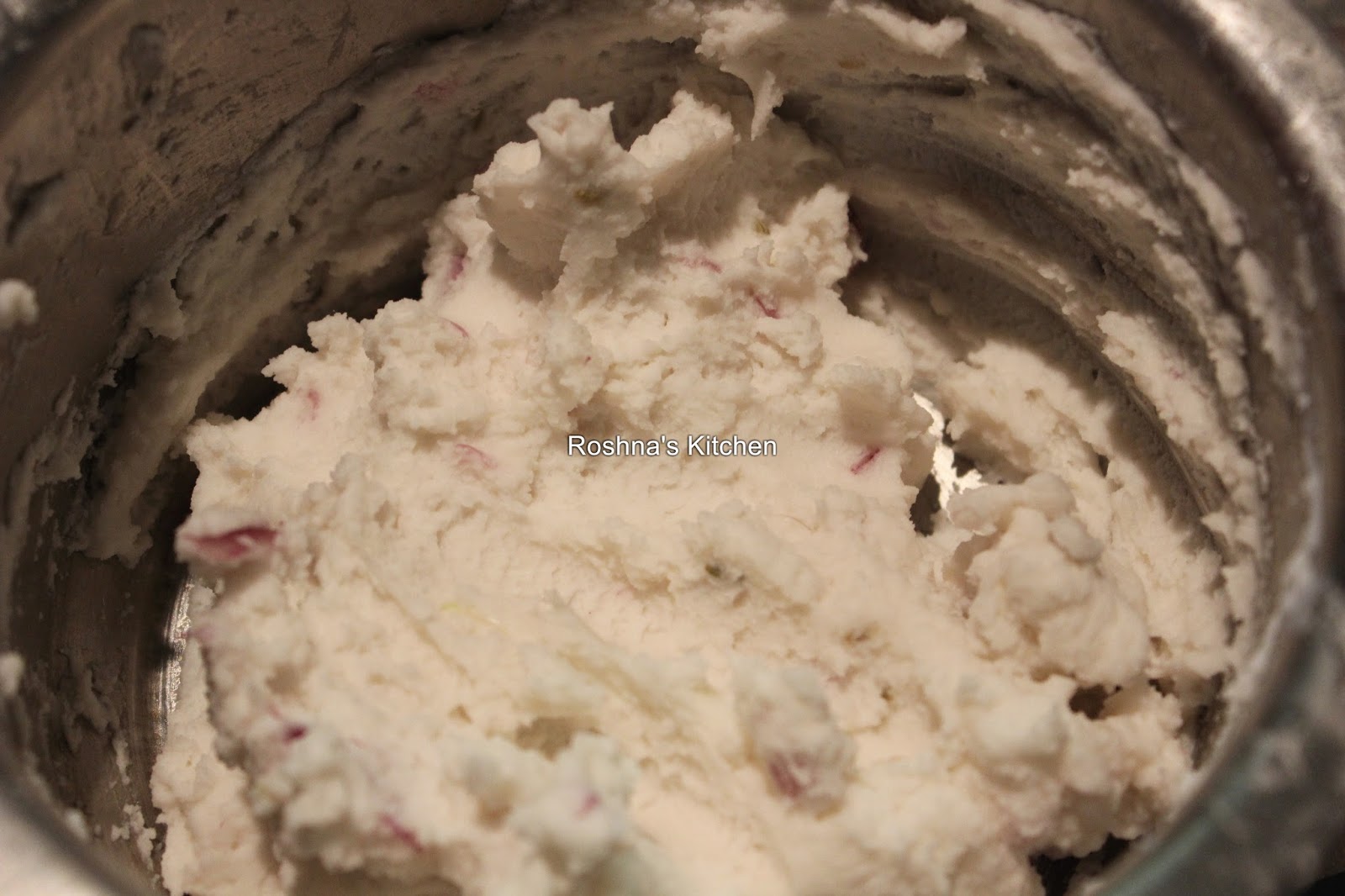 • Boil water and add the water in rice flour and make a dough and add crushed shallots and fennel seeds mixture in to it and mix well