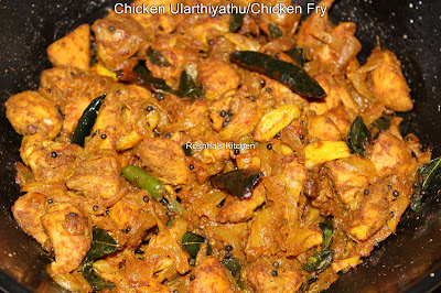 - Tasty Chicken Ularthiyathu / Sauteed Chicken is ready to serve hot as a side dish with rice