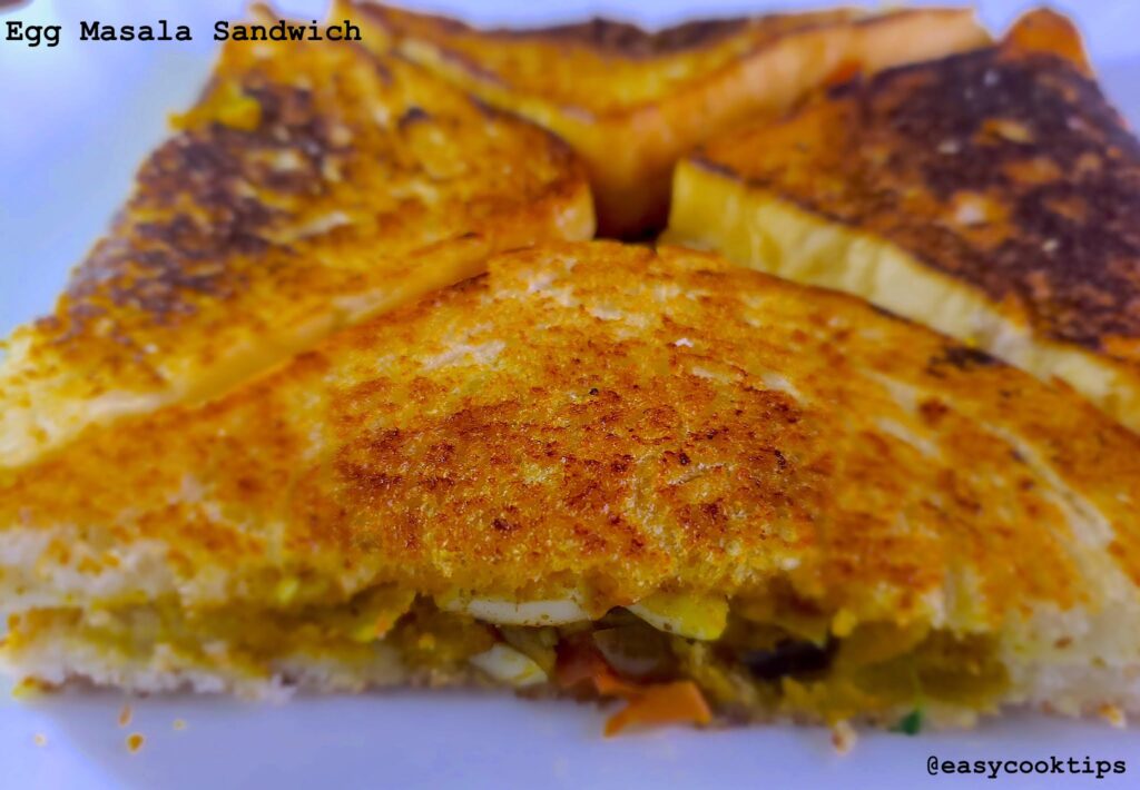 Egg Masala Sandwich Recipe | Easy Egg Sandwich Recipe Video Recipe. Today I am posting here the recipe of an easy egg sandwich that you can prepare within few minutes. In this sandwich recipe, crispy bread pieces are stuffed with boiled egg masala. For making this egg sandwich, first you need to boil eggs and then you need to chop them. After that, you need to make egg masala stuffing. Just check my recipe for preparing egg masala stuffing. After stuffing the boiled egg masala in between two bread slices, I toasted the bread slices in butter until both sides turns golden brown and crisp. Then cut diagonally into half and serve. Hope now you understood that how easy is to make this egg masala sandwich. You can serve this egg masala sandwich as breakfast as well as snack. Try this easy sandwich recipe and let me know your feedback.