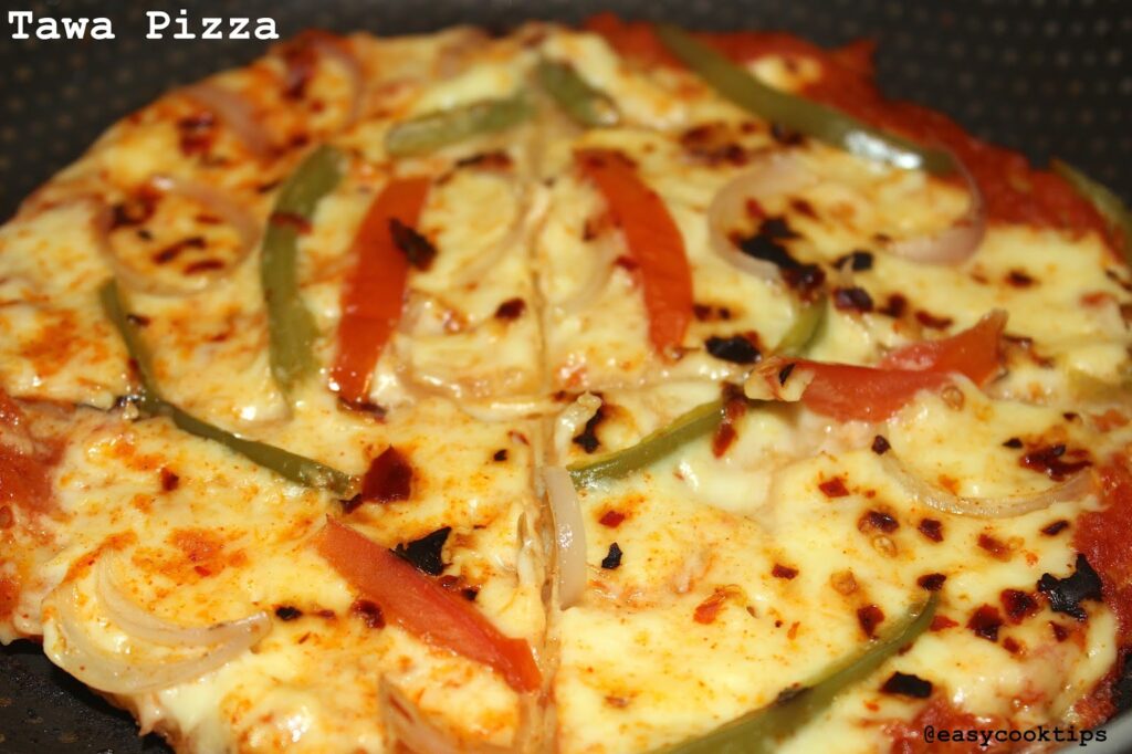 Pizza without Oven | Tawa Pizza | No Yeast & No Cheese Veg Pizza Made with Homemade Pizza Sauce with Video Recipe. Pizza is flat bread made with all-purpose flour/maida and topped with pizza sauce, cheese and some vegetarian as well as non vegetarian pizza toppings and baked it in oven. Traditionally it is an Italian cuisine recipe, but it’s popular in all over the world. This recipe of pizza is for those who don’t have oven in there house for making pizza. Here I made pizza on a tawa, it’s taste was just like the taste of the pizza that we bake in oven. Once you learned to make pizza in home you will stop buying it from outside. Just check my recipe, then you can understand that how easy is to make pizza at home. This recipe has some variation to the normal pizza recipe, Normally pizza is dough is fermented with yeast, but here I am using baking powder and baking soda instead of yeast, so it will be perfect for the people who don’t want to include yeast in their diet. One more variation is there, that is instead of cheese here I am using white sauce as I don’t like cheese, I think some people will be there who don’t like the taste of cheese like me. In this recipe I am showing you how to make pizza sauce at home. So, today we will learn how to make pizza at home. Just try my recipe and let me know how it tuned out for you.