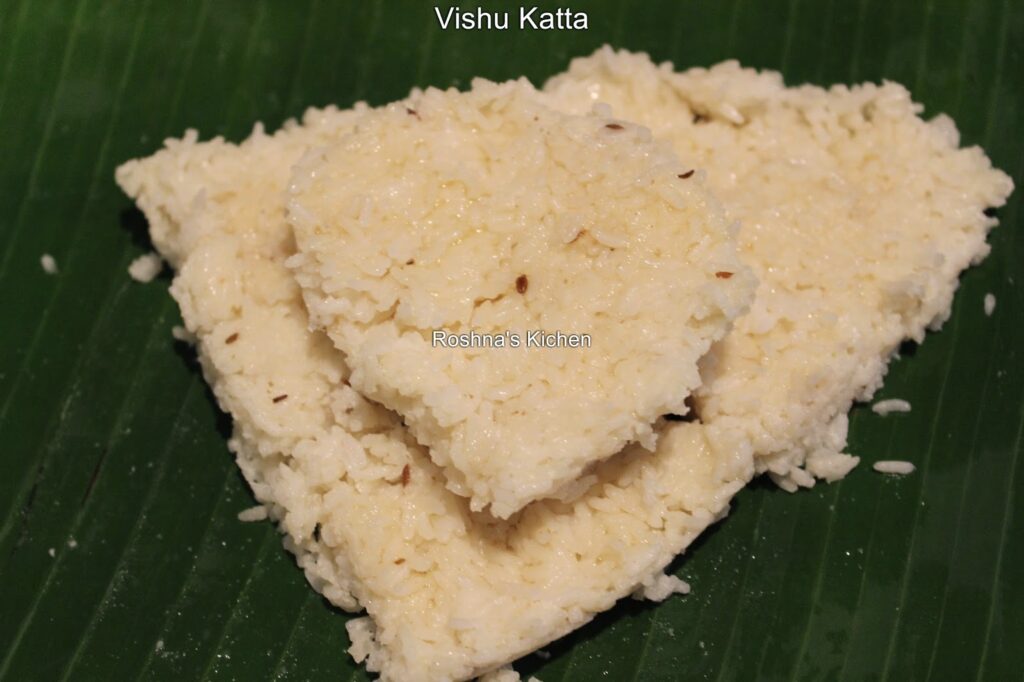 Here I am sharing the recipe of Vishu Katta. In Kerala on the day of vishu after seeing the vishu kani people used to have vishu katta as breakfast. Vishu Katta is a rice cake made with coconut milk and served along with Jaggery syrup.Let us see how to prepare this